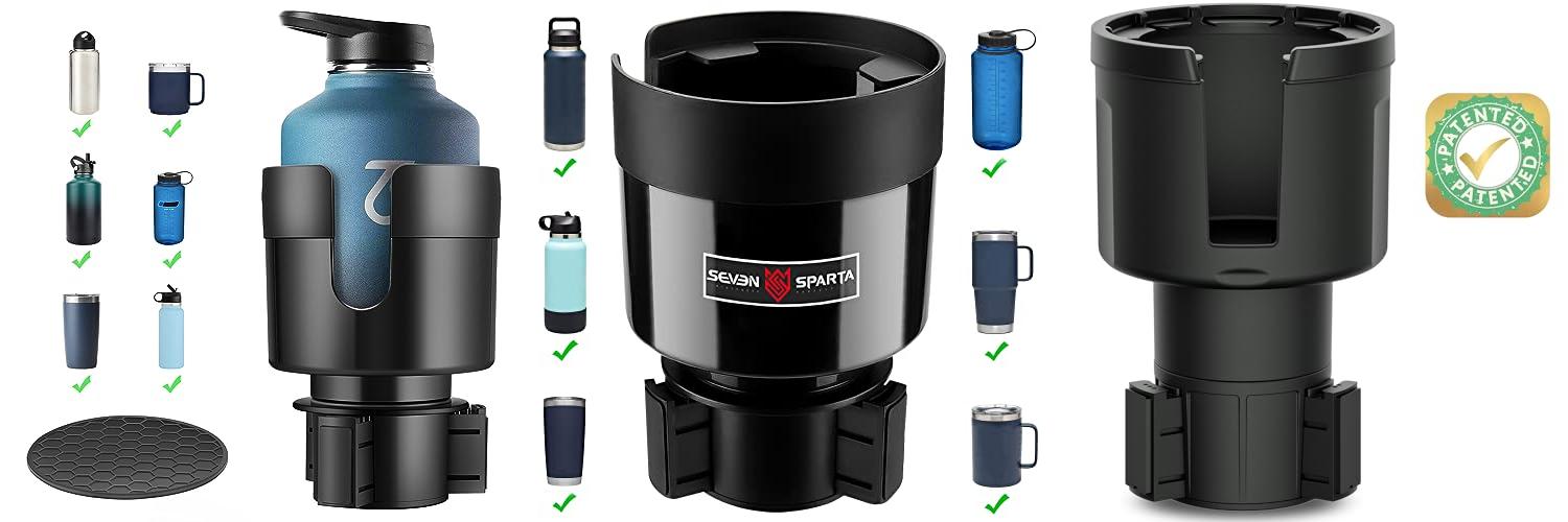 Seven Sparta Car Cup Holder Expander with Adjustable Base, Compatible with Hydro Flasks 32/40 Ounce, Compatible with Yeti Ramblers 20/26/30 Ounce, Other Bottles in 3.4"-3.8" (Black)