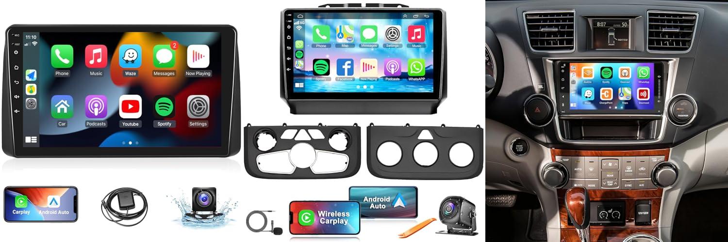 3. 7″ Car Radio for Toyota Highlander 2008-2013 Double Din Car Stereo with Wireless CarPlay and Android Auto Touch Screen Support Mirror Link Bluetooth Backup Camera