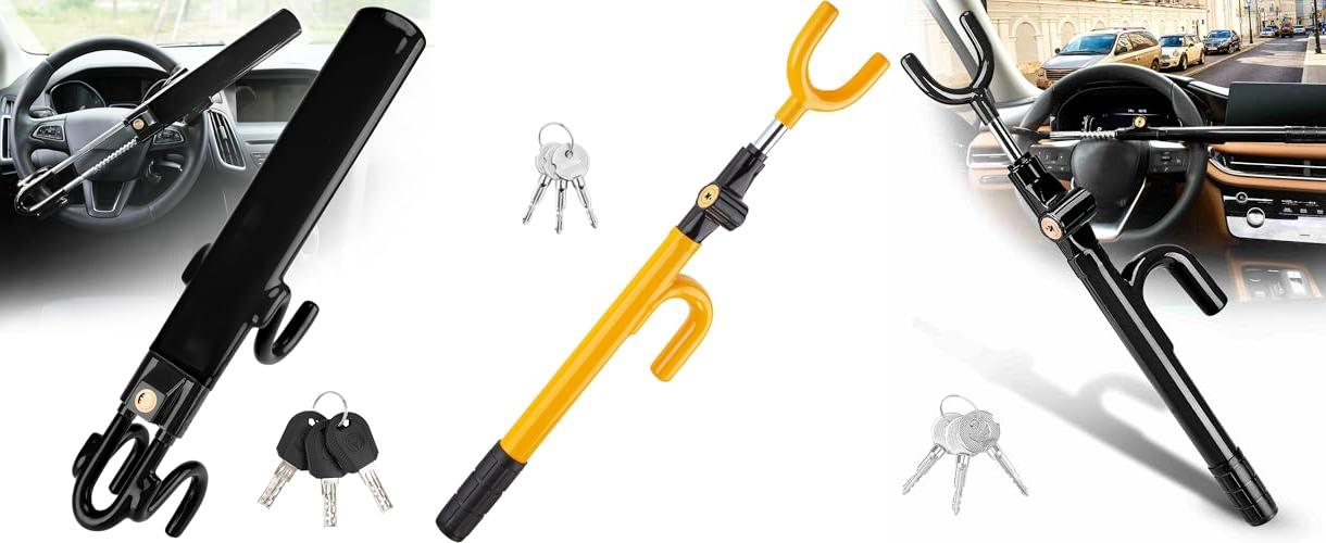 1. Tevlaphee Steering Wheel Lock Anti-Theft Car Device Heavy Duty Security Car Lock Antitheft Locking Devices Great Deterrent Adjustable Car Wheel Lock Anti Theft for Vehicle Truck with 3 Keys(Black)