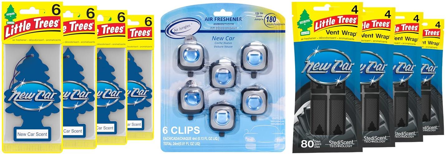 Bring the exhilarating scent of a brand new car into your life with LITTLE TREES New Car Scent Air Fresheners. This pack of 24 hanging trees is designed to keep your car or home smelling fresh for a long time. LITTLE TREES is the original car air freshener, trusted for years to deliver quality scents.