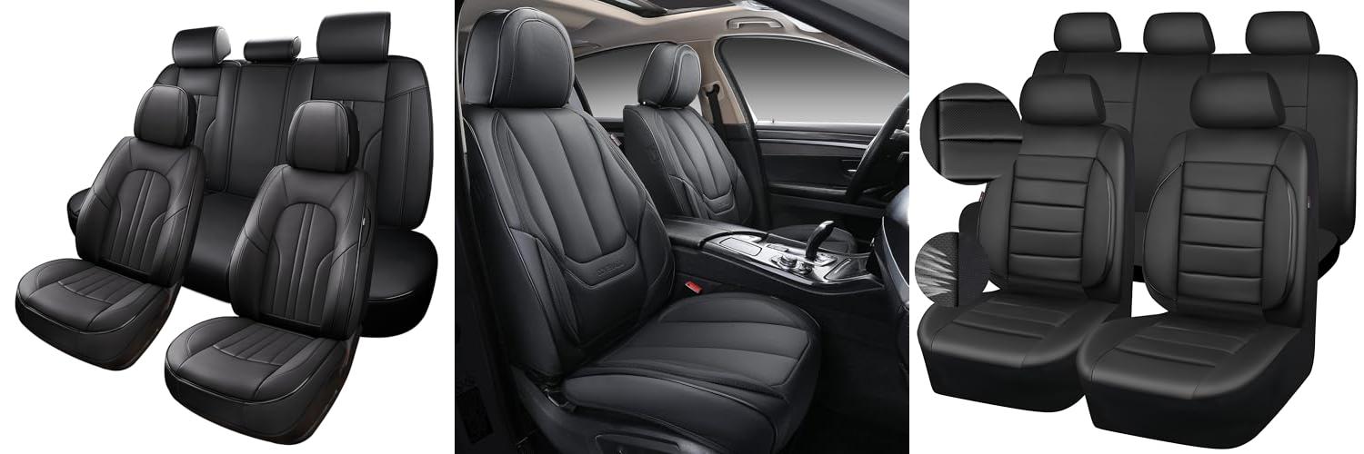 Upgrade your car’s interior with the Coverado Car Seat Covers Full Set. These stylish and luxurious black leather covers offer superior protection and a comfortable feel for your seats.